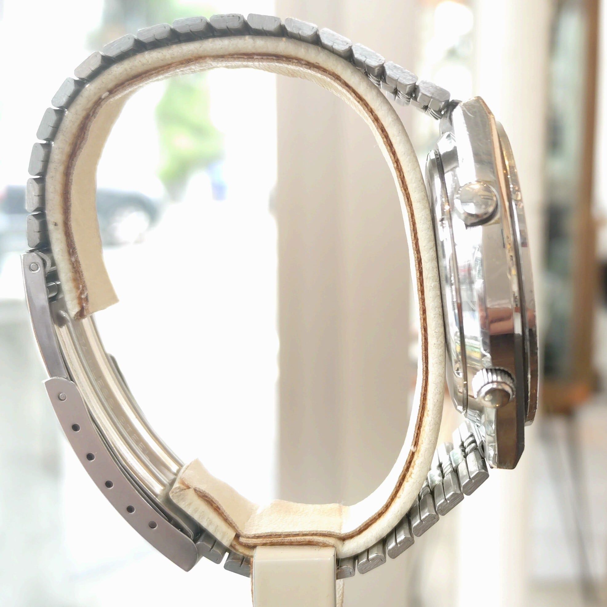 動作正常。ガラス傷なし。ビンテージユーズド品ですので、傷などの状態を画像で確認のうえ注文お願いします。裏蓋に印字あり。(画像タップで拡大できます)