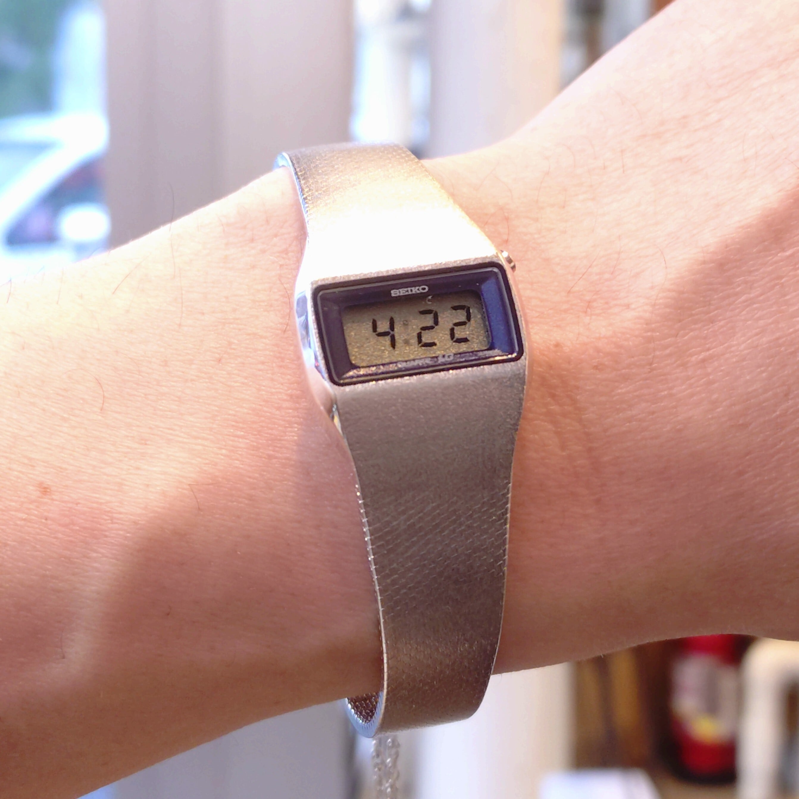しなやかで美しいブレスレット、ワイドな液晶画面など素晴らしいデザイン。国産ビンテージレディースデジタルの最高傑作。