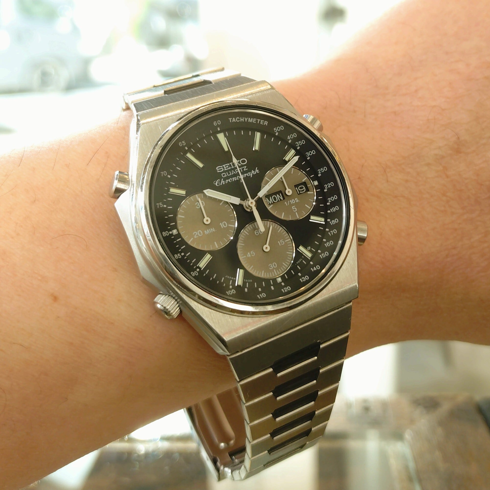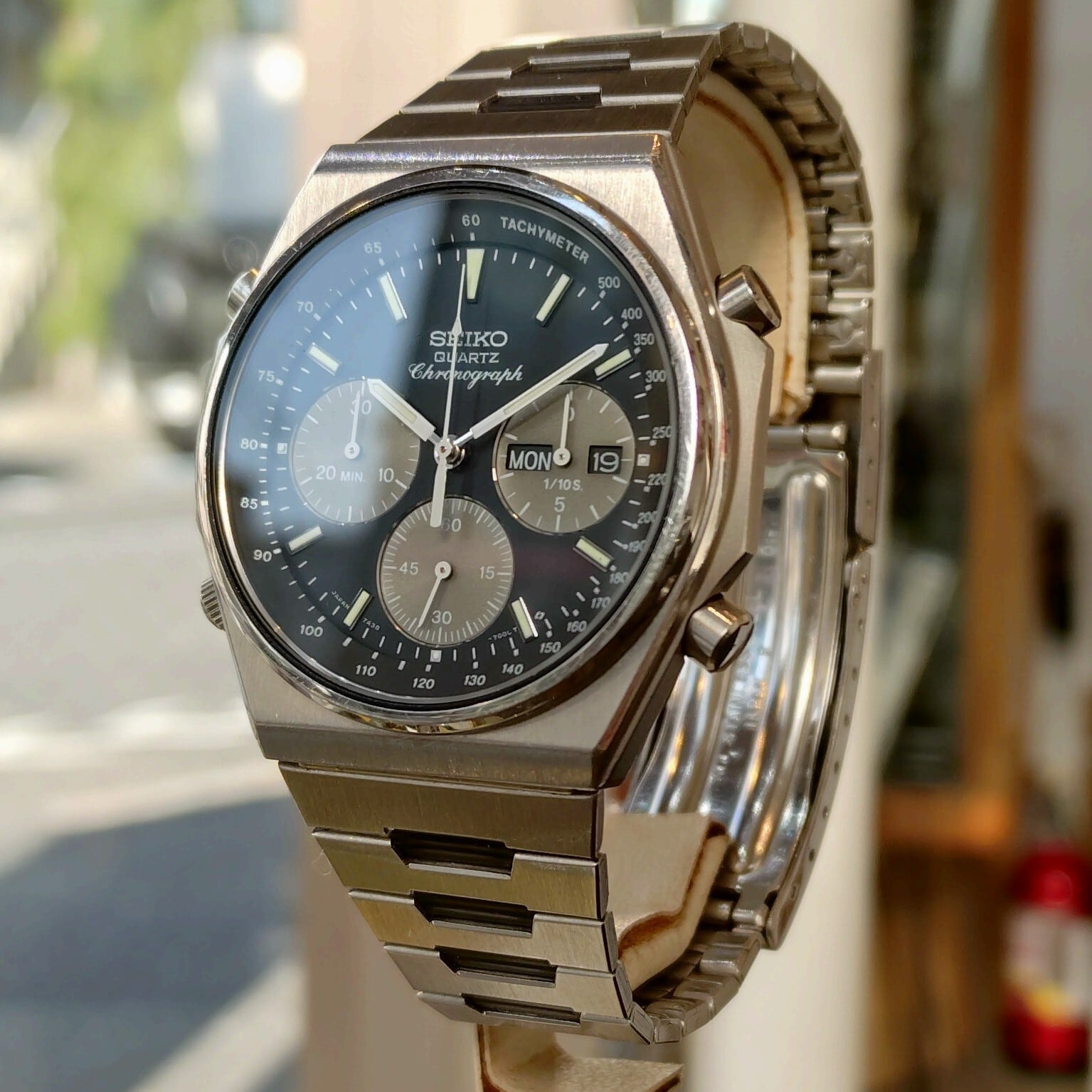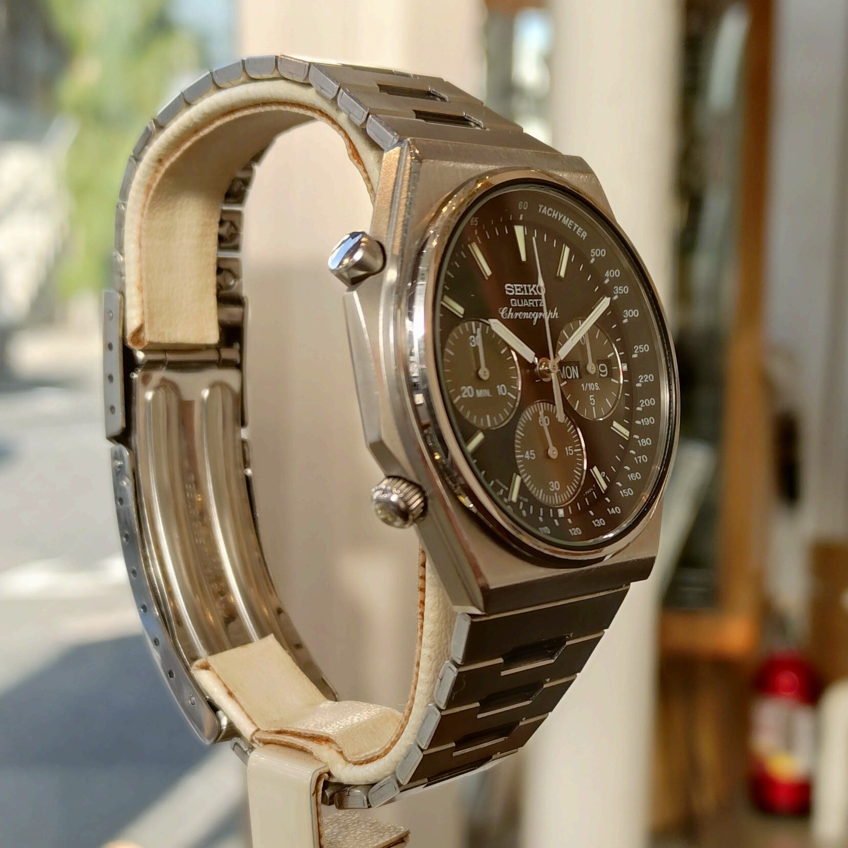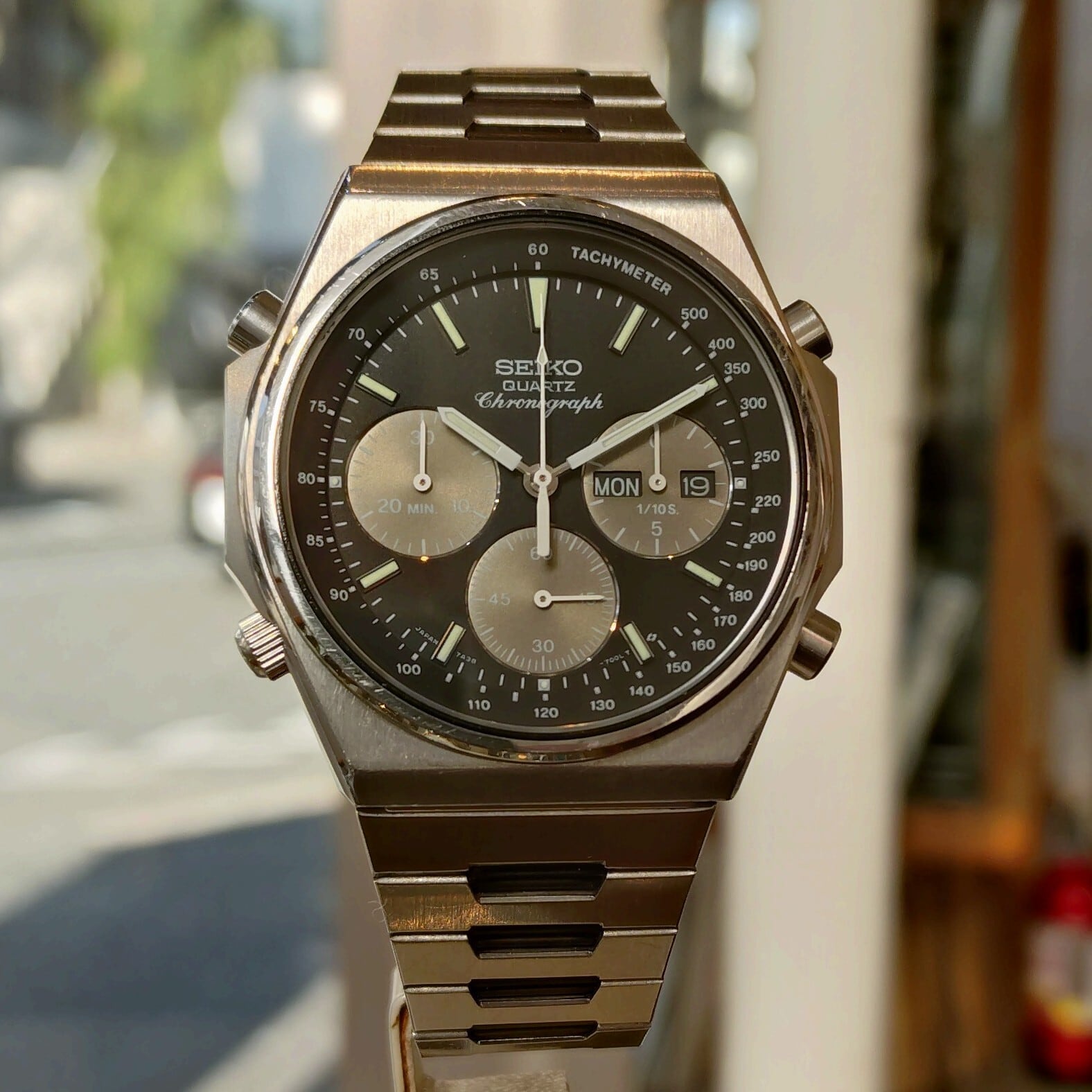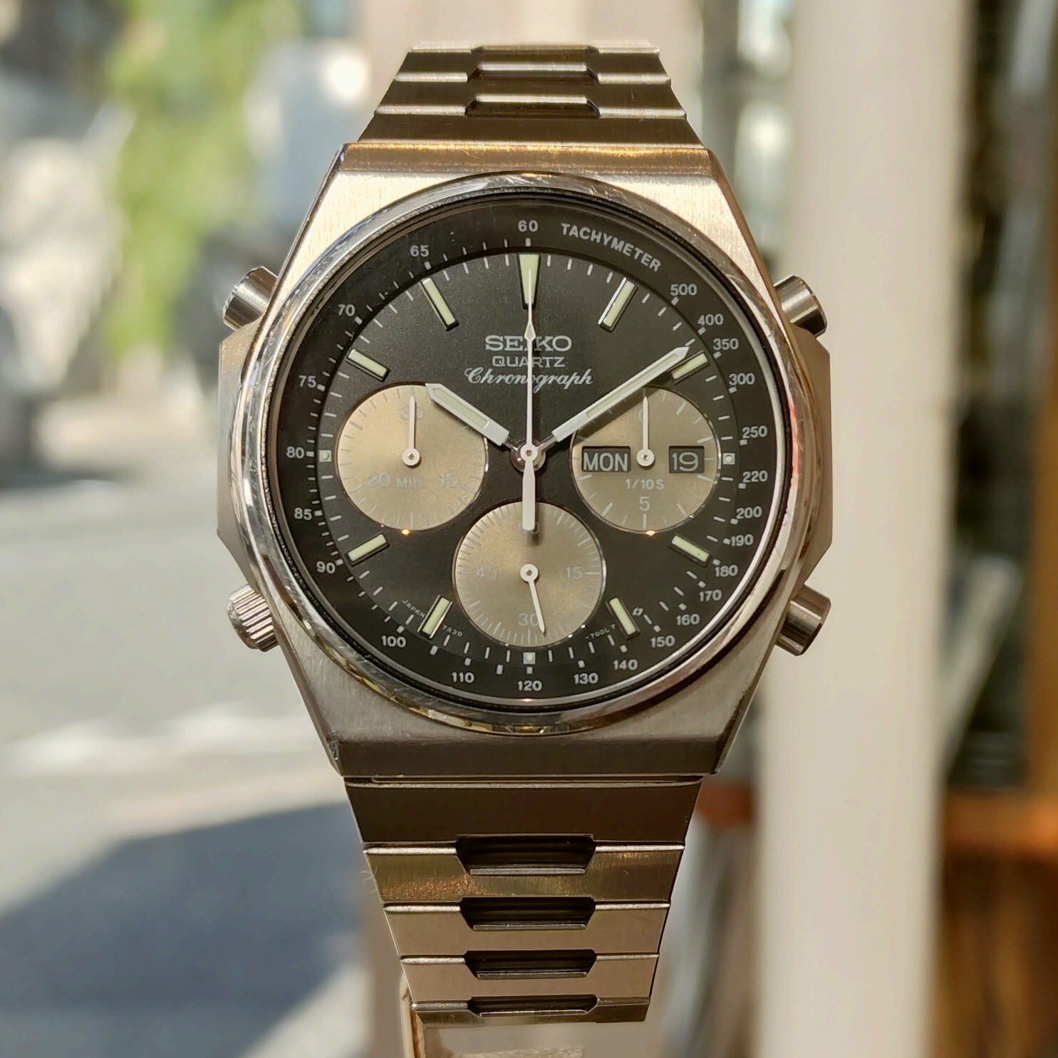 世界初のクォーツクロノグラフ7A28に、日付と曜日が足された「7A38」ビンテージクロノグラフ。「リバースパンダ」と呼ばれるレアモデルです。